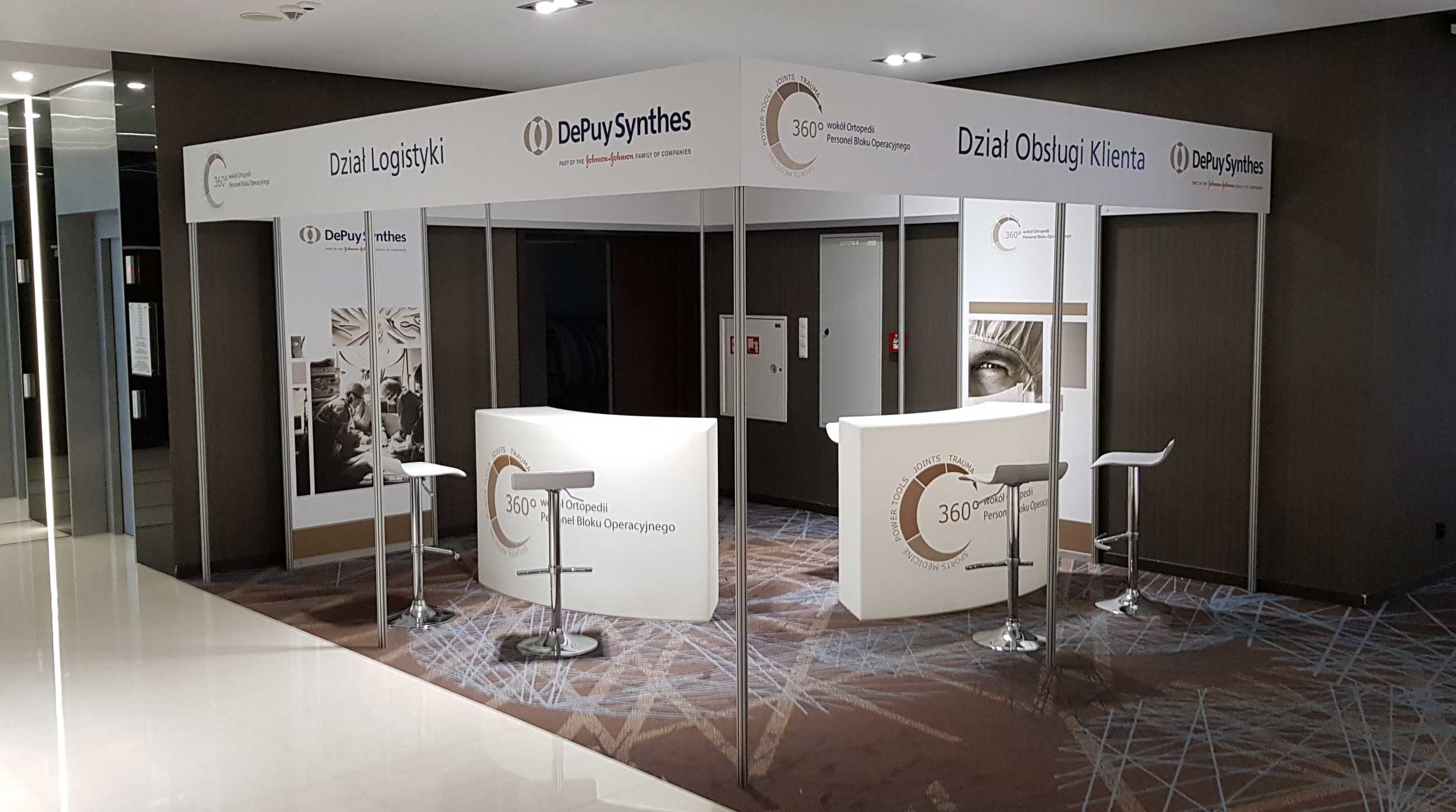 Oferujemy gotowe stoiska targowe zaprojektowane z wykorzystaniem profili i ram aluminiowych.