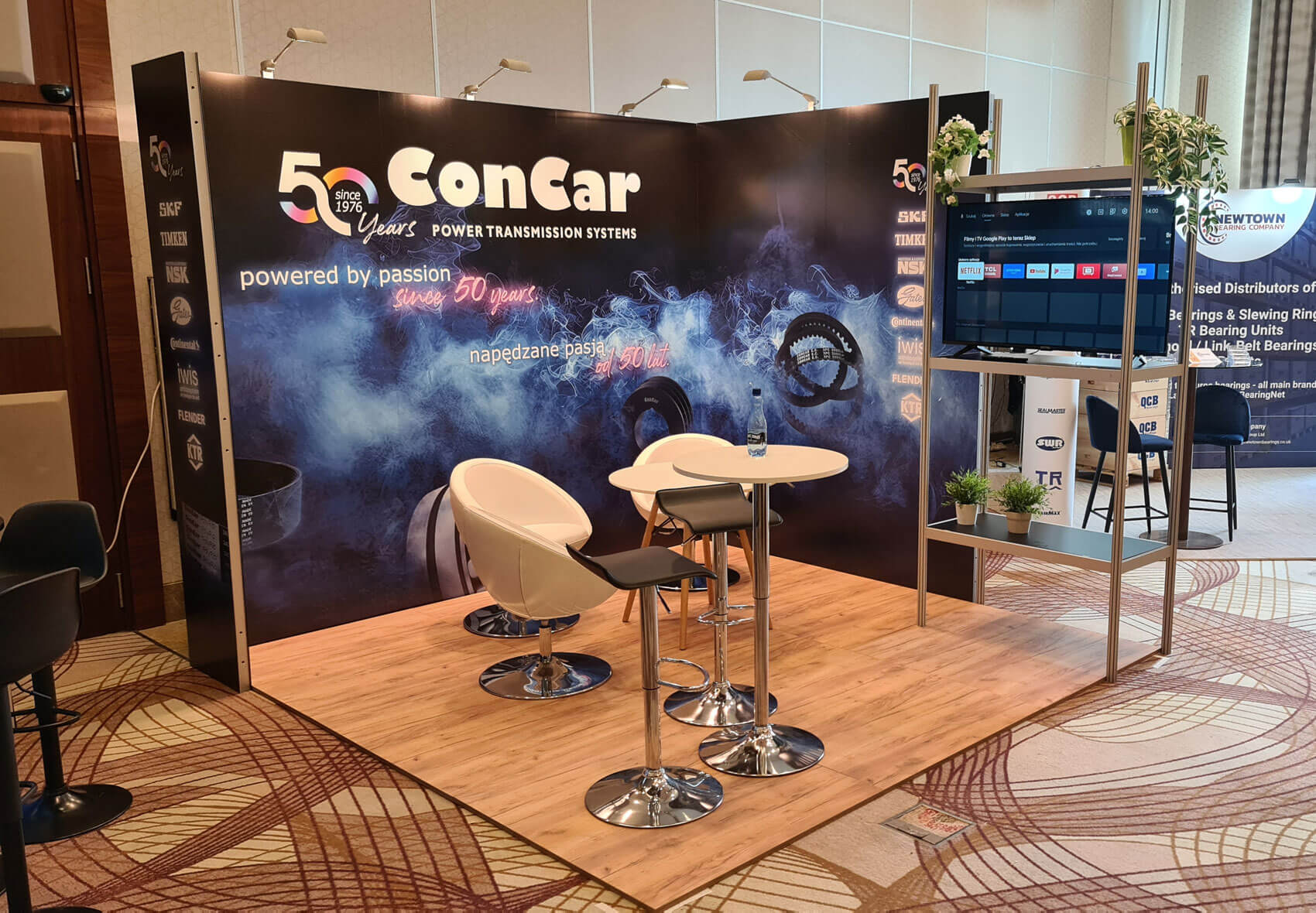 Realizacja stoiska wystawowego dla firmy ConCar na konferencji BearingNet User Meeting 2026 w hotelu DoubleTree by Hilton w Warszawie